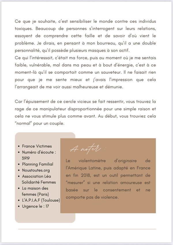 Ce Ebook, disponible gratuitement est un guide mais également un témoignage qui t'apportera une aide pour stopper ce schéma toxique.